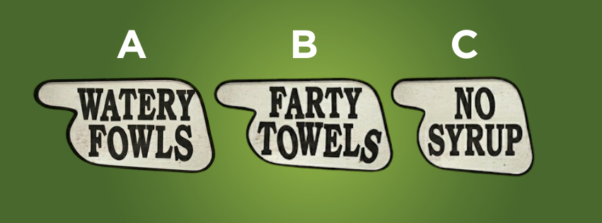 Which of the signs below does NOT make an anagram of Fawlty Towers?